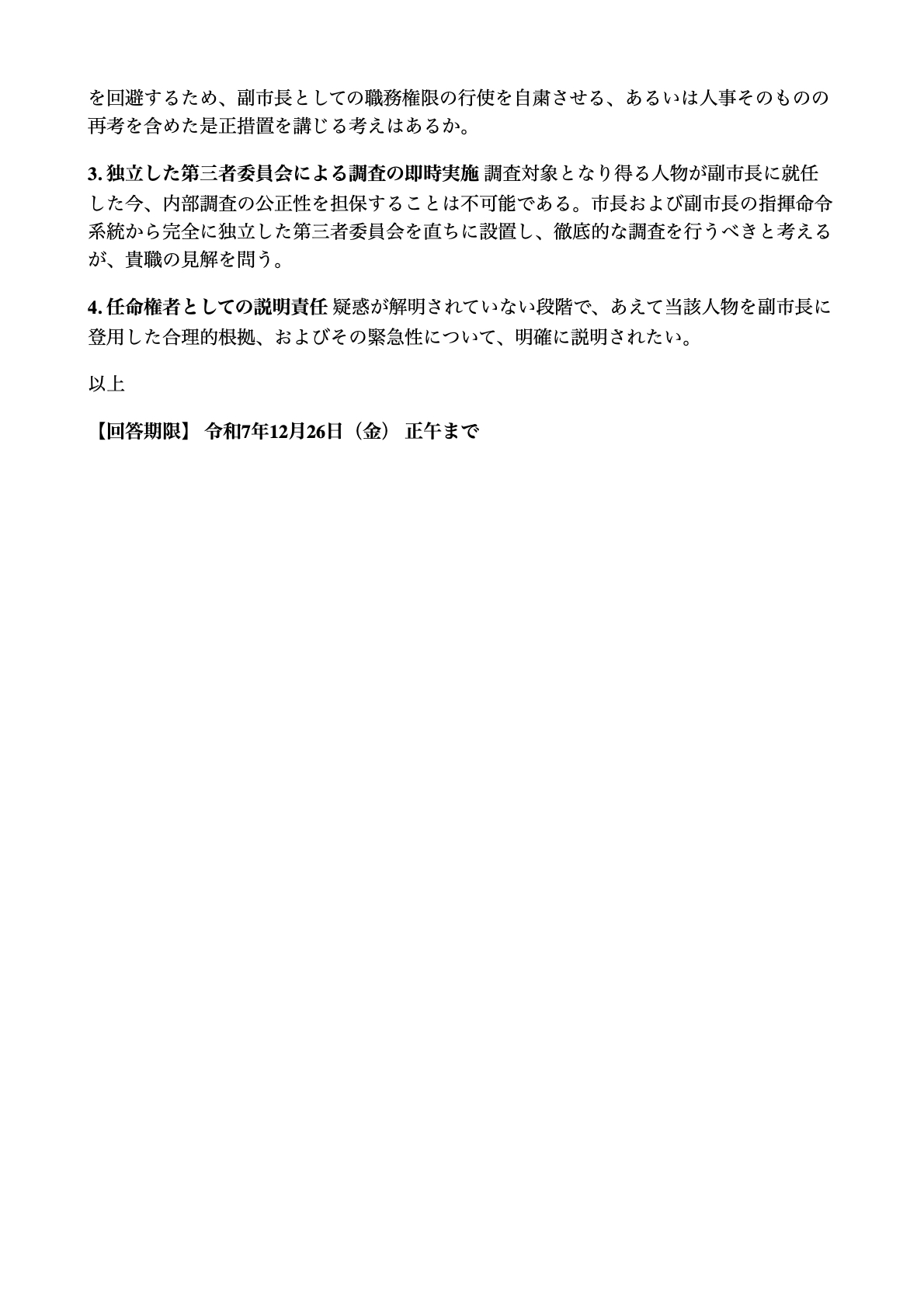 榎本市政の失政のままの、現状維持という名の停滞を選ぶのか、未来のた